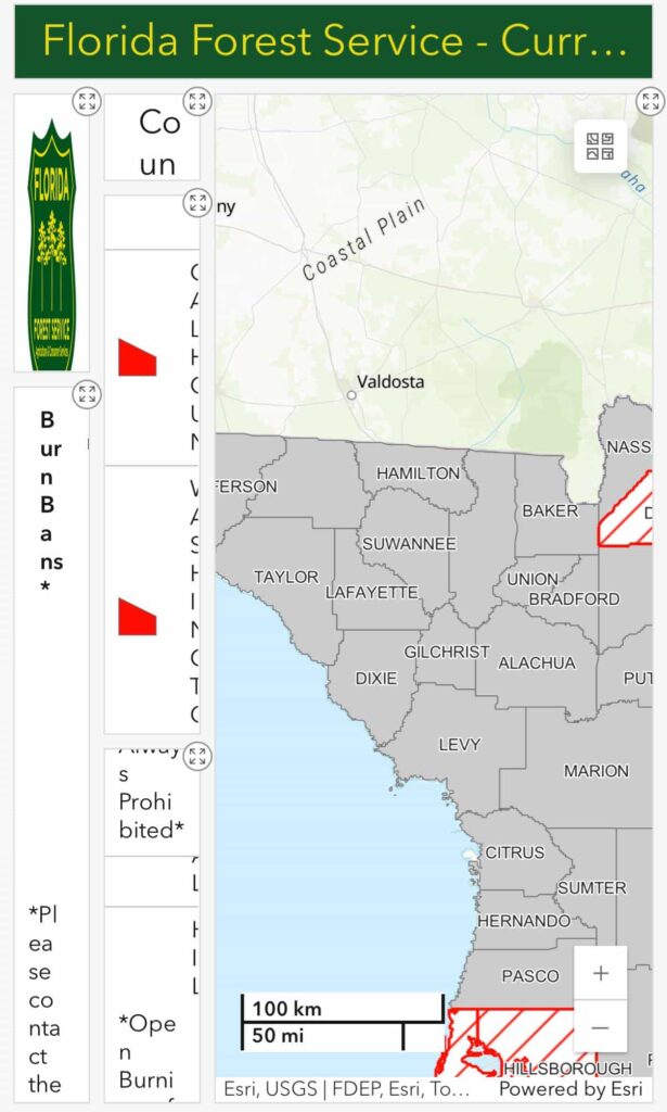 - Local burn ban notices from Suwannee County or the state forestry service.