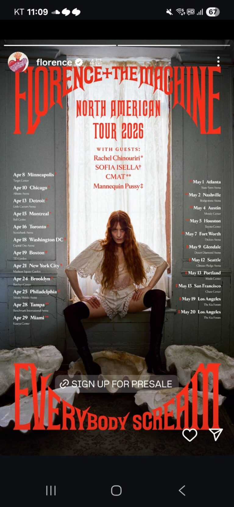 ChicagoLollapalooza Tour poster for Florence + The Machine North American Tour 2026 surfaces — Chicago date spotted October 25, 2025 View Full Post