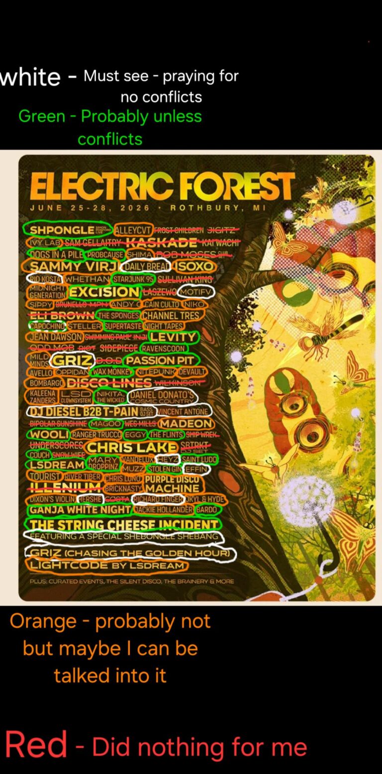 MichiganElectric Forest After 12 Years at Forest, Redditor Color-Codes Electric Forest 2026 Lineup — Community Reacts January 23, 2026 View Full Post