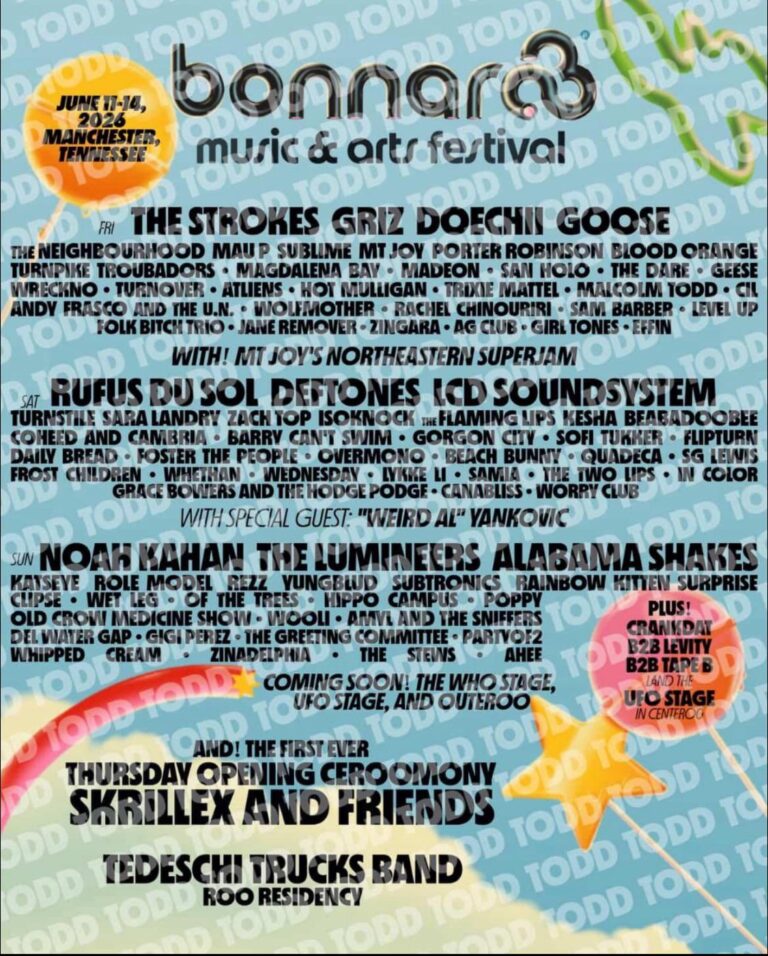 TennesseeBonnaroo Viral mock Bonnaroo ‘leak’ poster lists The Strokes, Skrillex, Noah Kahan — fans call it fake December 2, 2025 View Full Post
